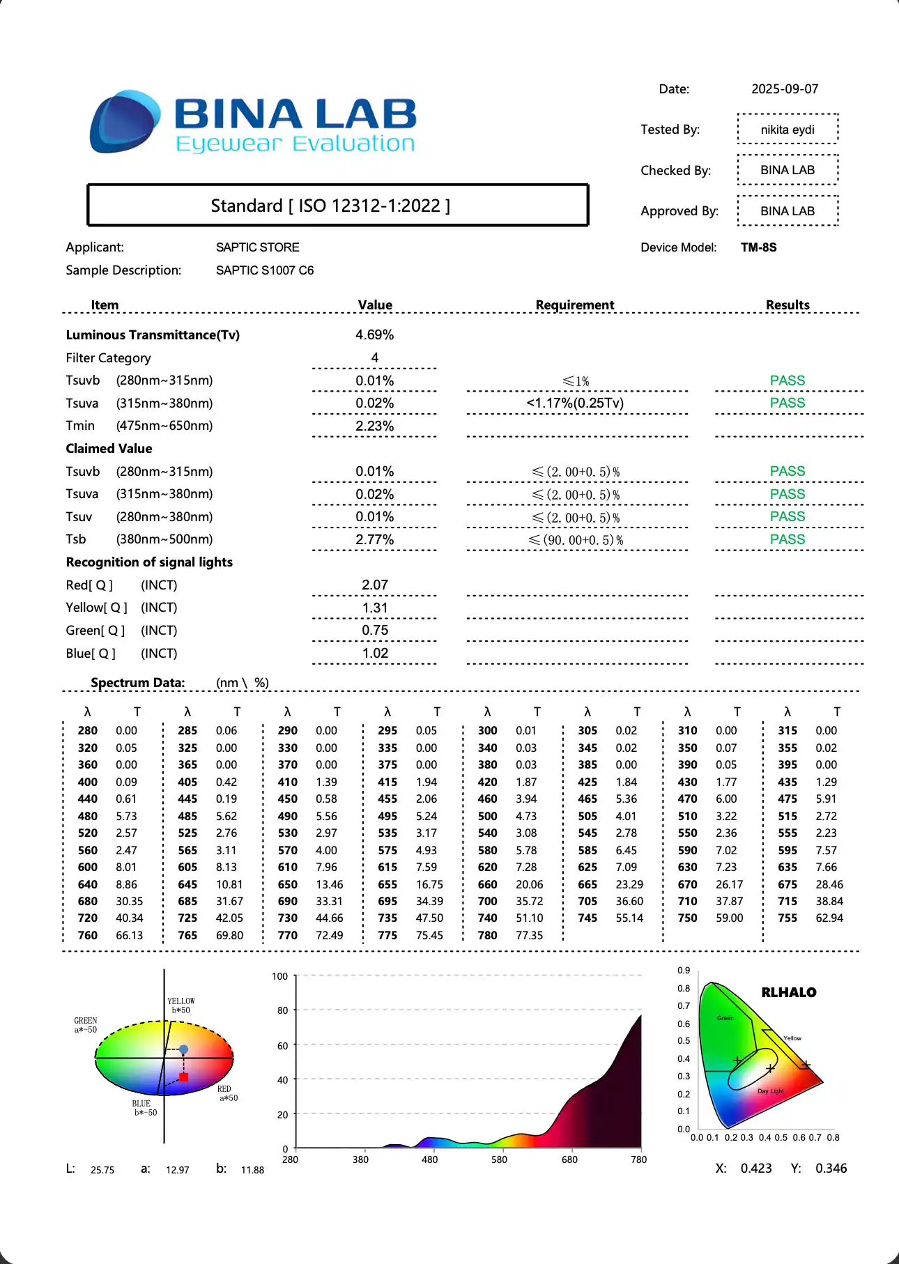 رنگ‌بندی عینک آفتابی پلاریزه 1007