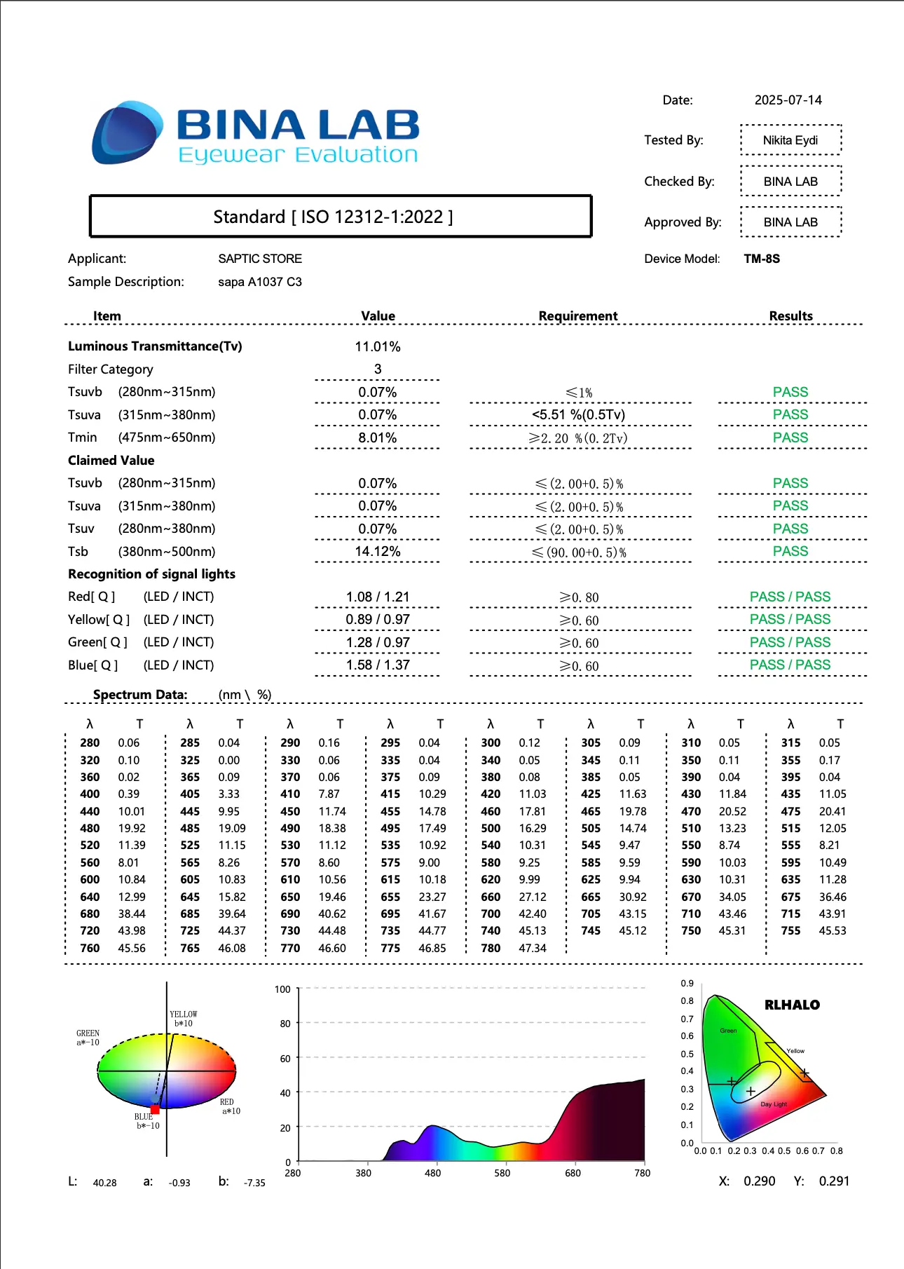 ویژگی‌های فنی عینک آفتابی پلاریزه A1037 :