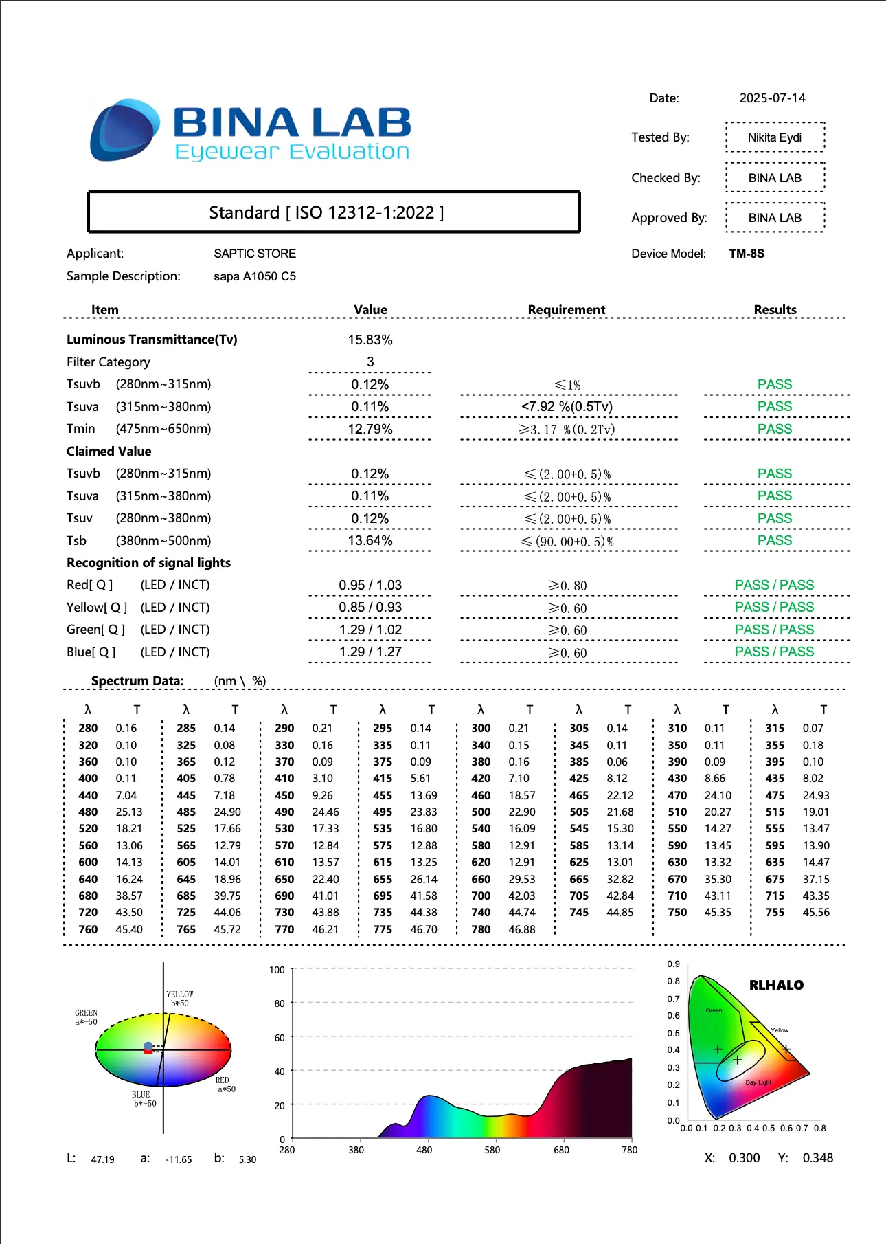رنگبندی عینک آفتابی پلاریزه A1050: