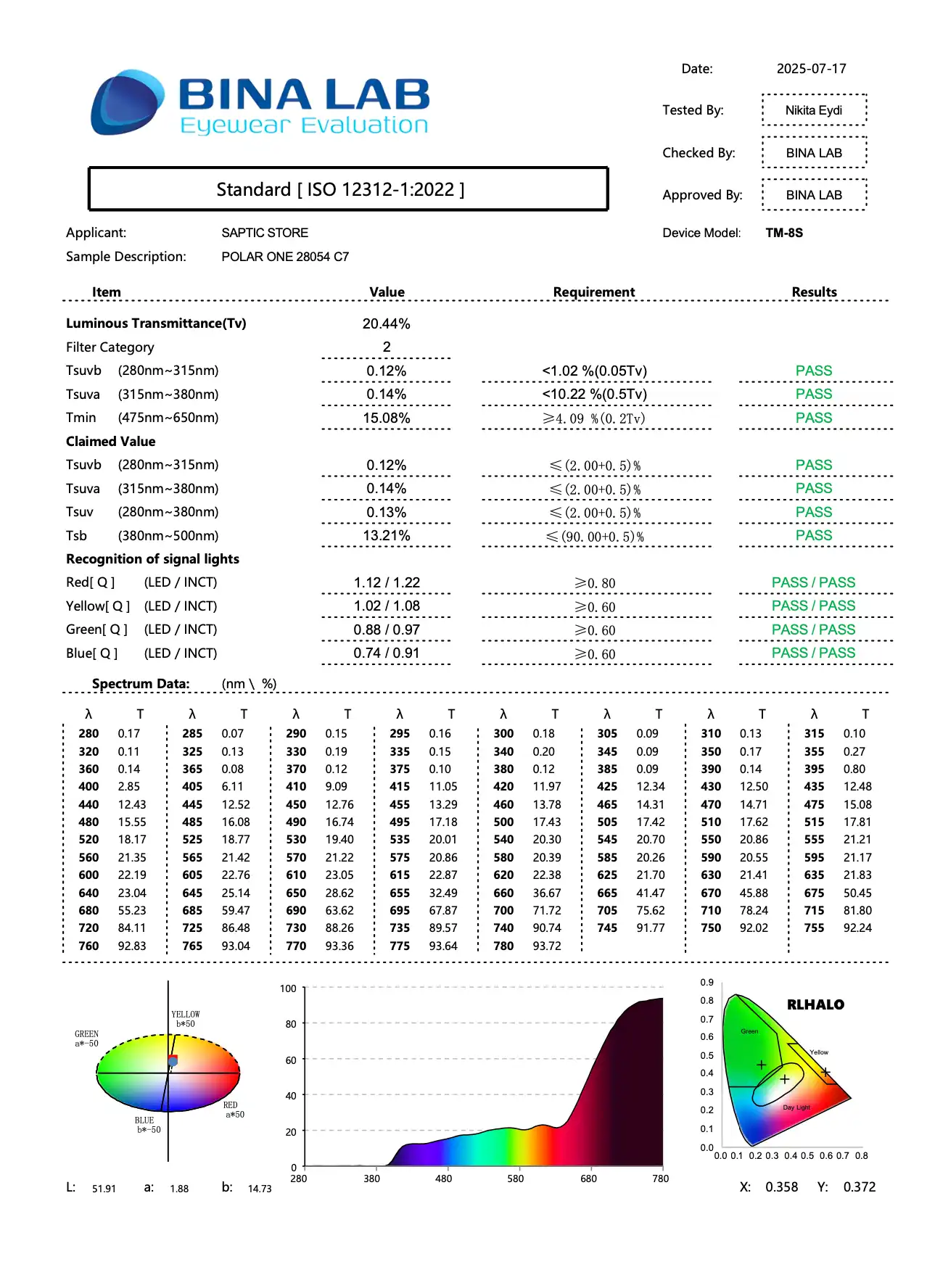 اولین مورد کدمحصول میباشد، سپس عرض لنز و عرض پل درج میشوند. معمولاً یک عدد سومی نیز وجود دارد که نشان دهنده طول دسته عینک میباشد.